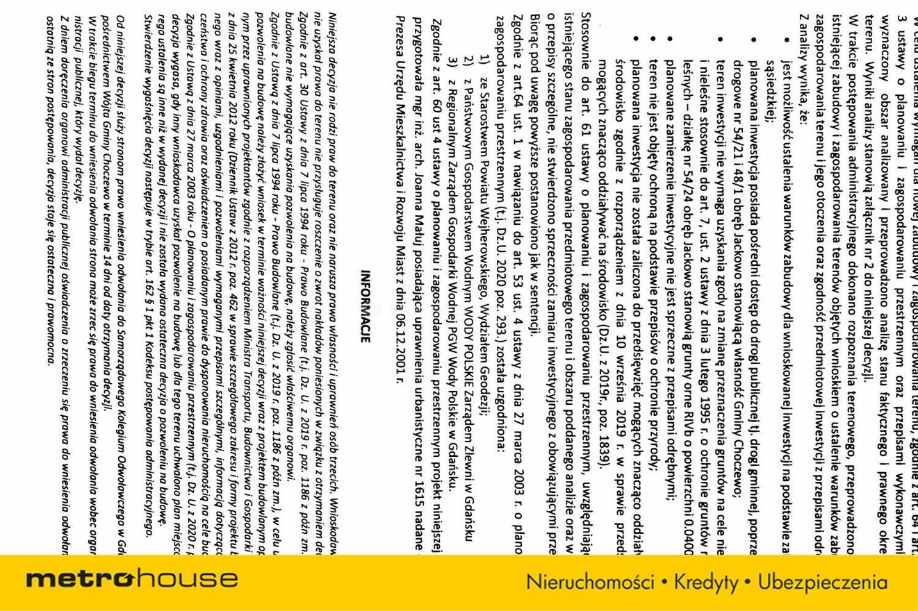 Działka posiada bezpośredni dostęp do drogi gminnej poprzez drogę wewnętrzną (działki nr 54/21 i 48/1) – stanowiące własność Gminy Choczewo.